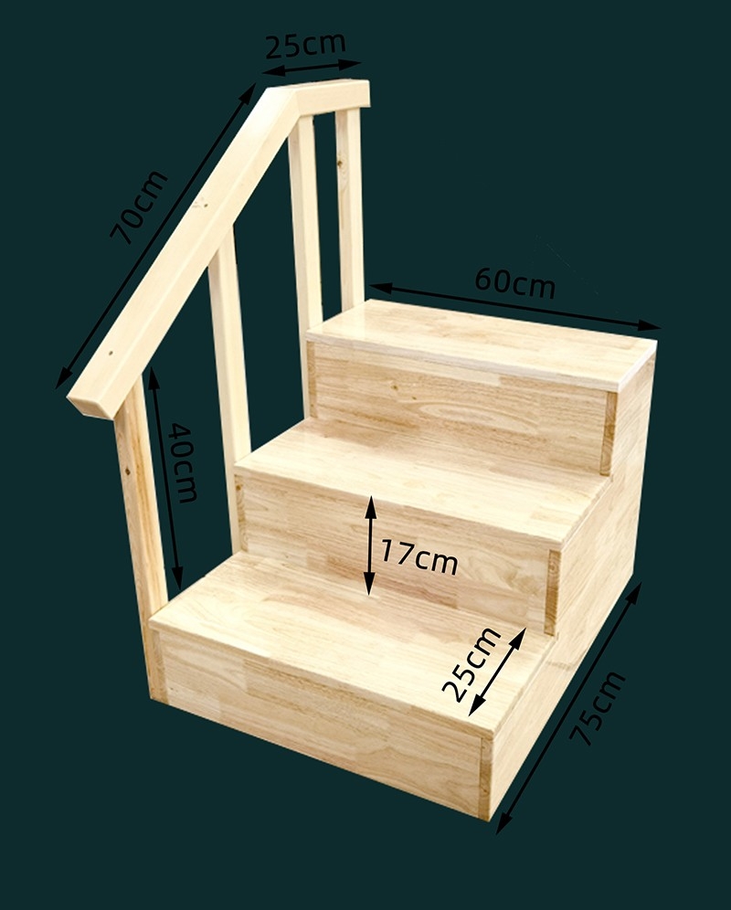 單向樓梯:平臺長50厘米×寬60厘米×高92厘米,梯長75厘米,梯面寬25厘米×高17厘米×長60厘米,梯欄(從梯面計算)高40厘米。